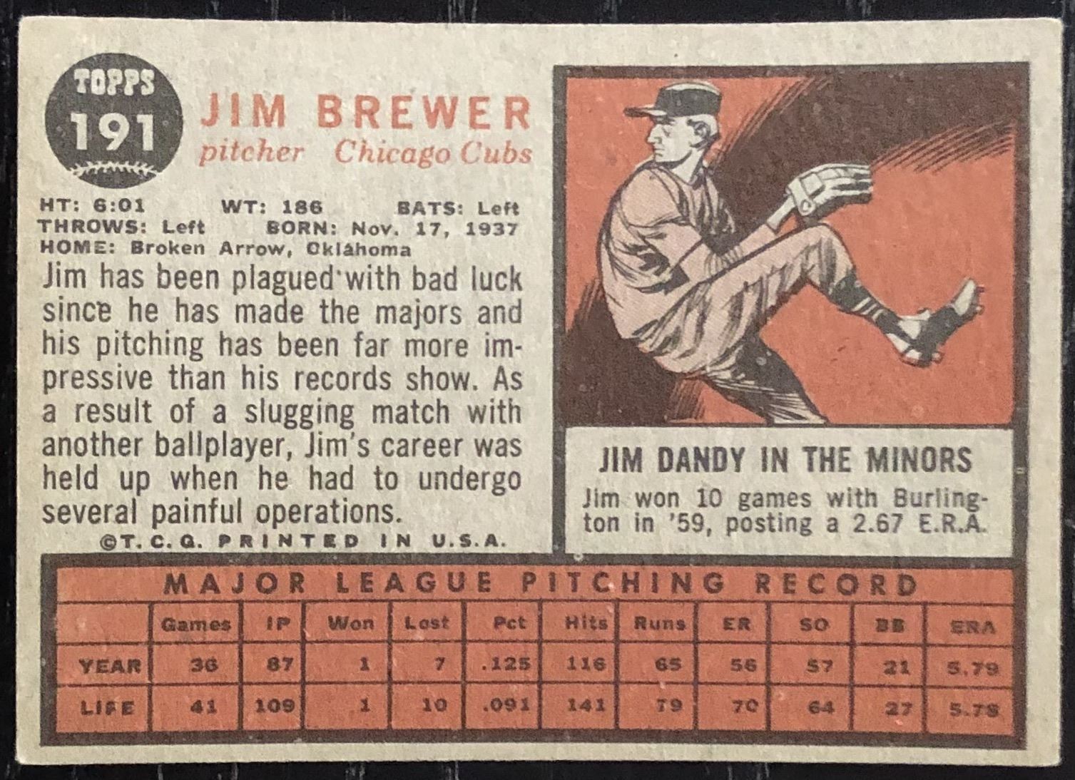 Lot 1042 1962 TOPPS JIM BREWER ROOKIE CARD