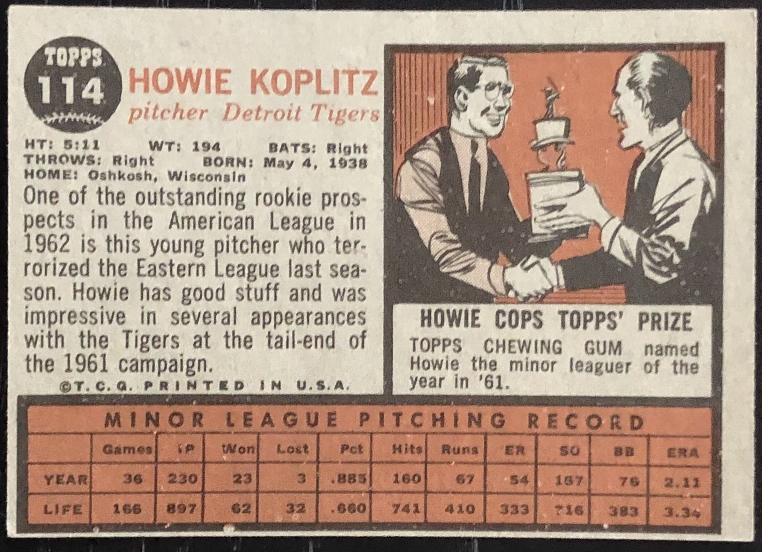 Lot 1043 1962 TOPPS HOWIE KOPLITZ