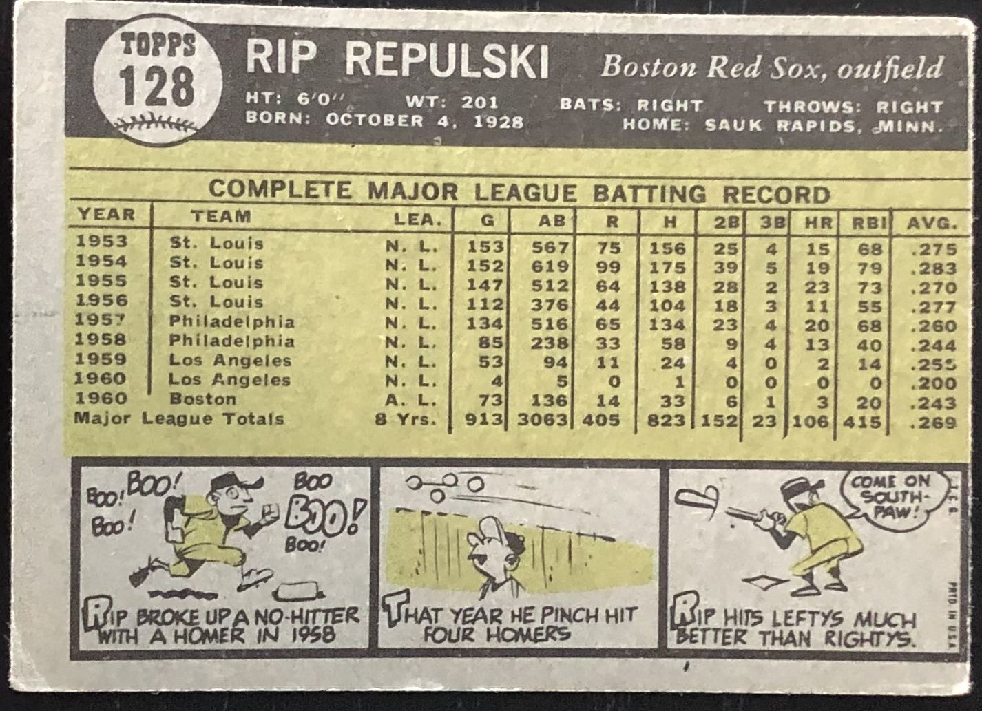 Lot 1051 1961 TOPPS RIP REPULSKI