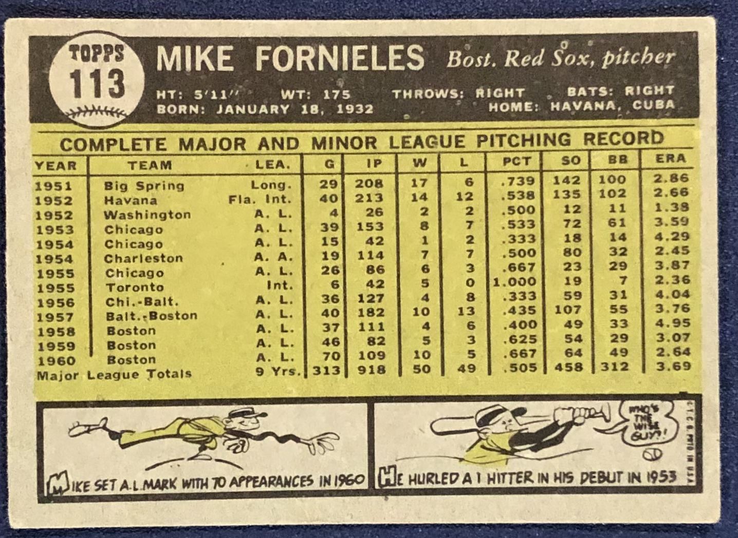 Lot 1053 1961 TOPPS MIKE FORNIELES