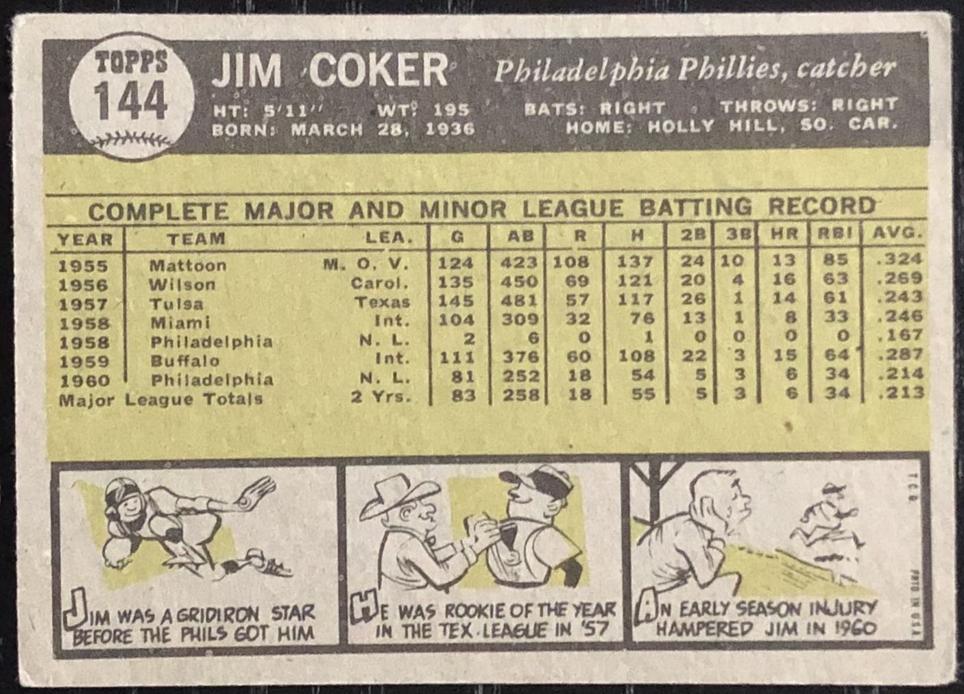 Lot 1059 1961 TOPPS JIM COKER ROOKIE CARD
