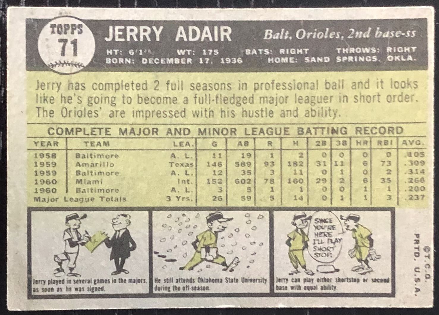Lot 1062 1961 TOPPS JERRY ADAIR ROOKIE CARD