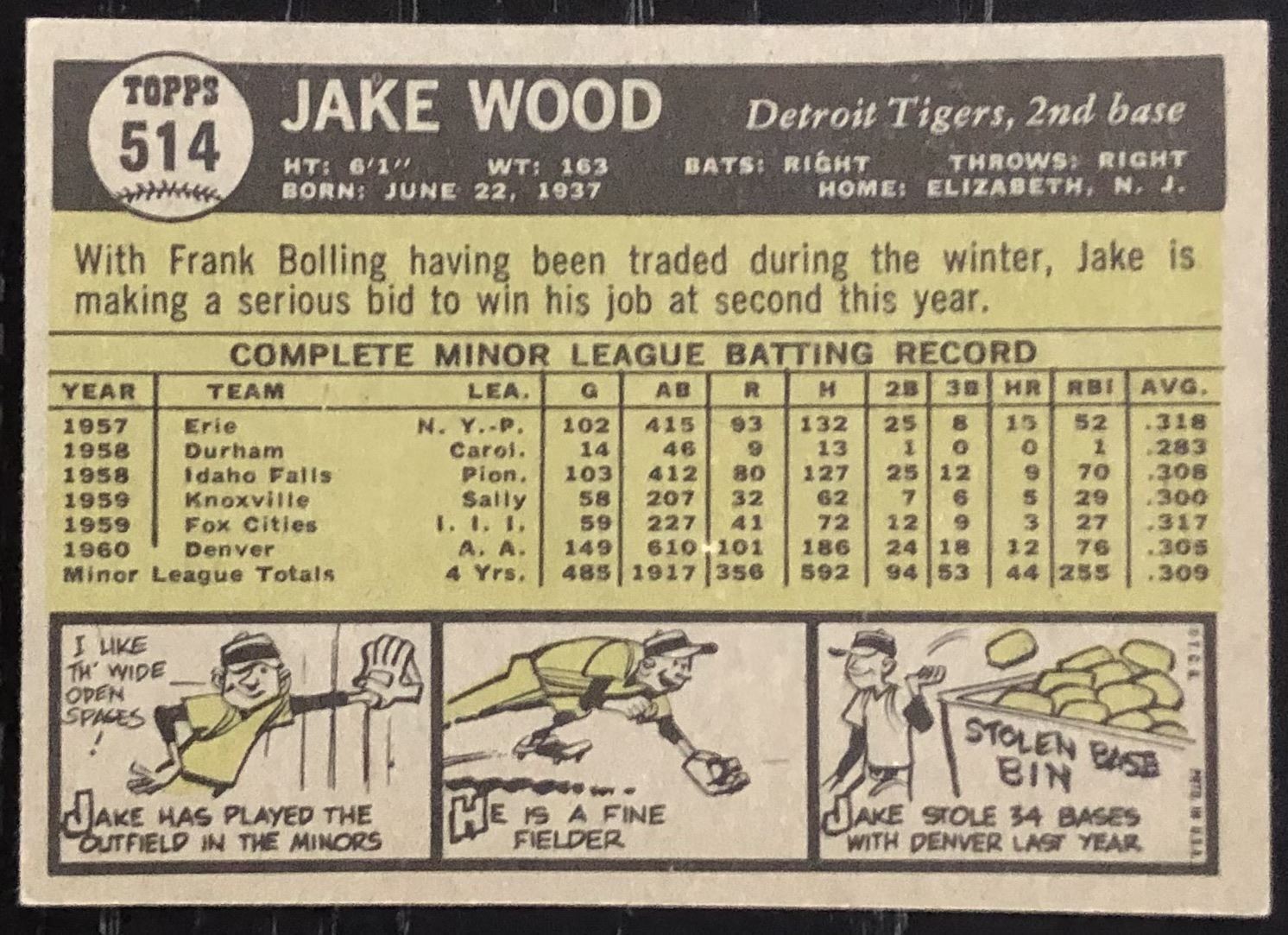 Lot 1063 1961 TOPPS JAKE WOOD ROOKIE CARD