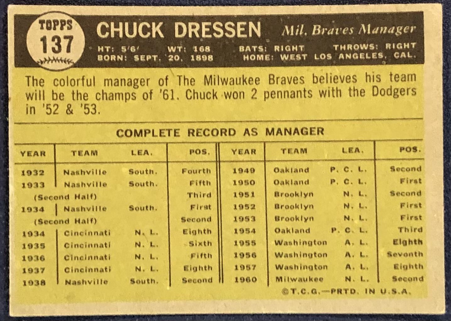 Lot 1075 1961 TOPPS CHUCK DRESSEN