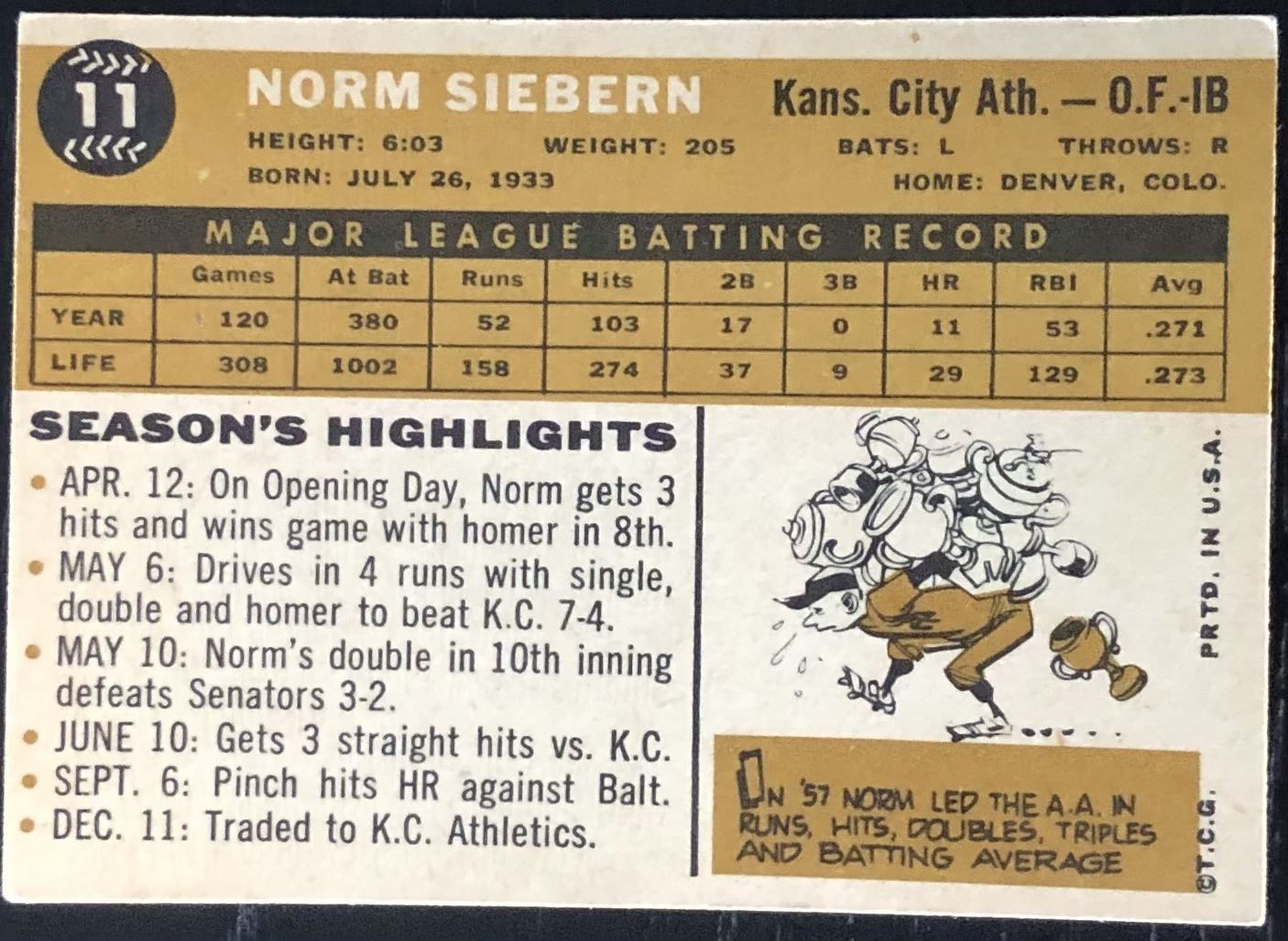 Lot 1085 1960 TOPPS WHITE BACK NORM SIEBERN