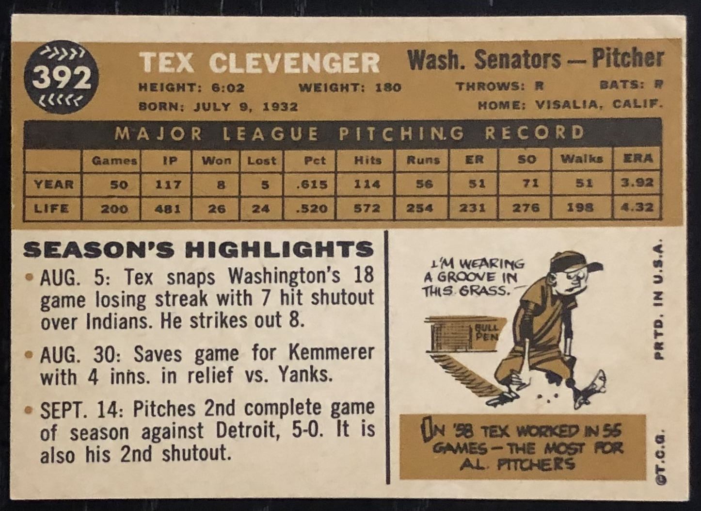 Lot 1091 1960 TOPPS TEX CLEVENGER