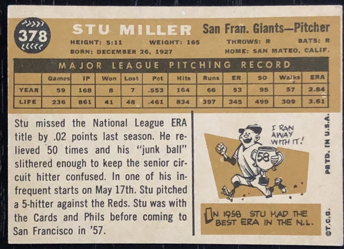 Lot 1092 1960 TOPPS STU MILLER