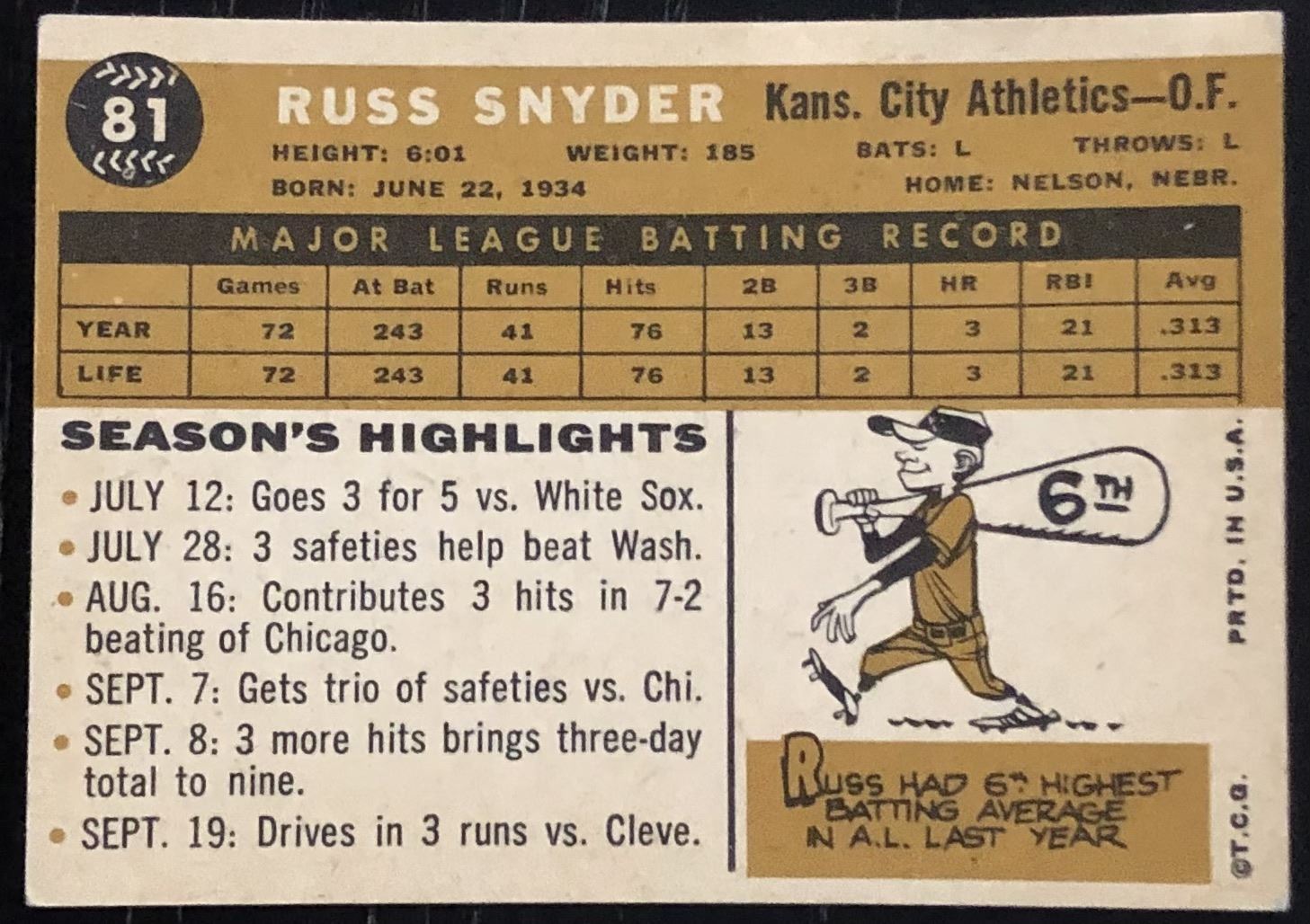 Card #81 MLB, baseball, vintage, rookie