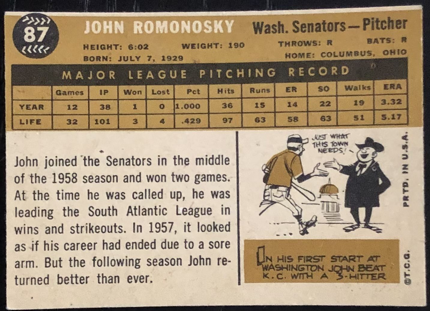 Lot 1104 1960 TOPPS JOHN ROMONOSKY