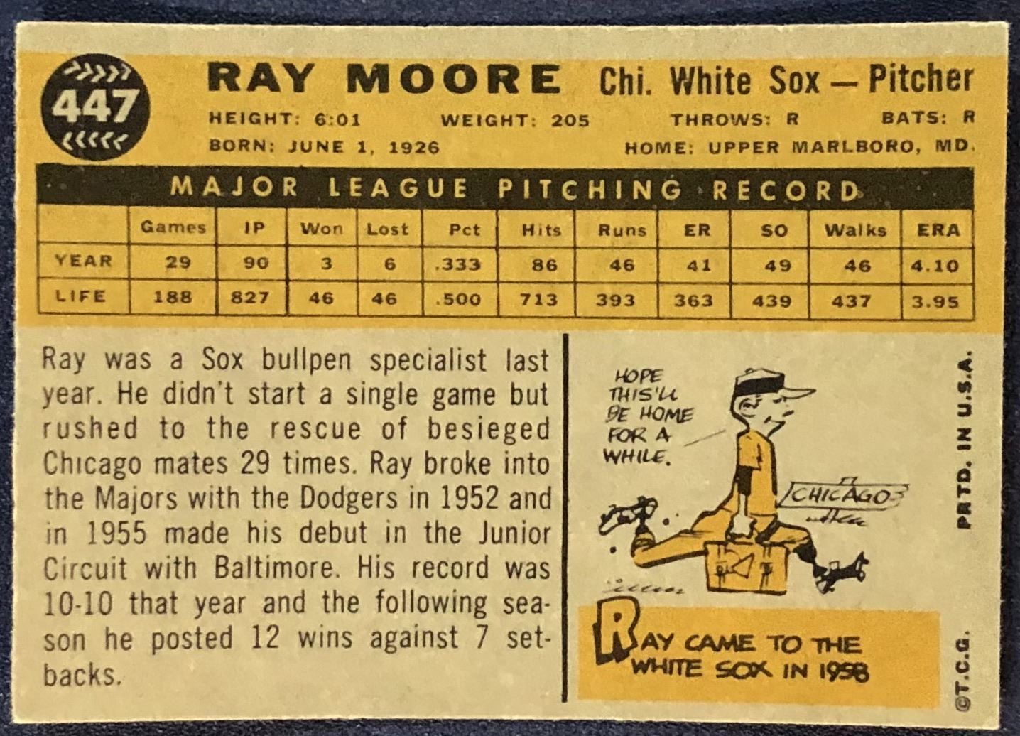Lot 1117 1960 TOPPS GRAY BACKS RAY MOORE