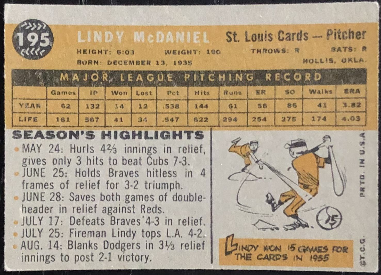 Lot 1119 1960 TOPPS GRAY BACKS LINDY McDANIEL