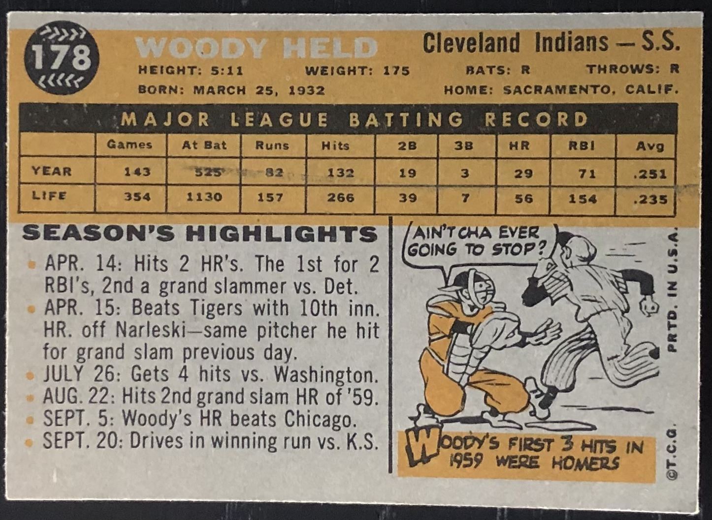 Lot 1139 1960 TOPPS GRAY BACK WOODY HELD