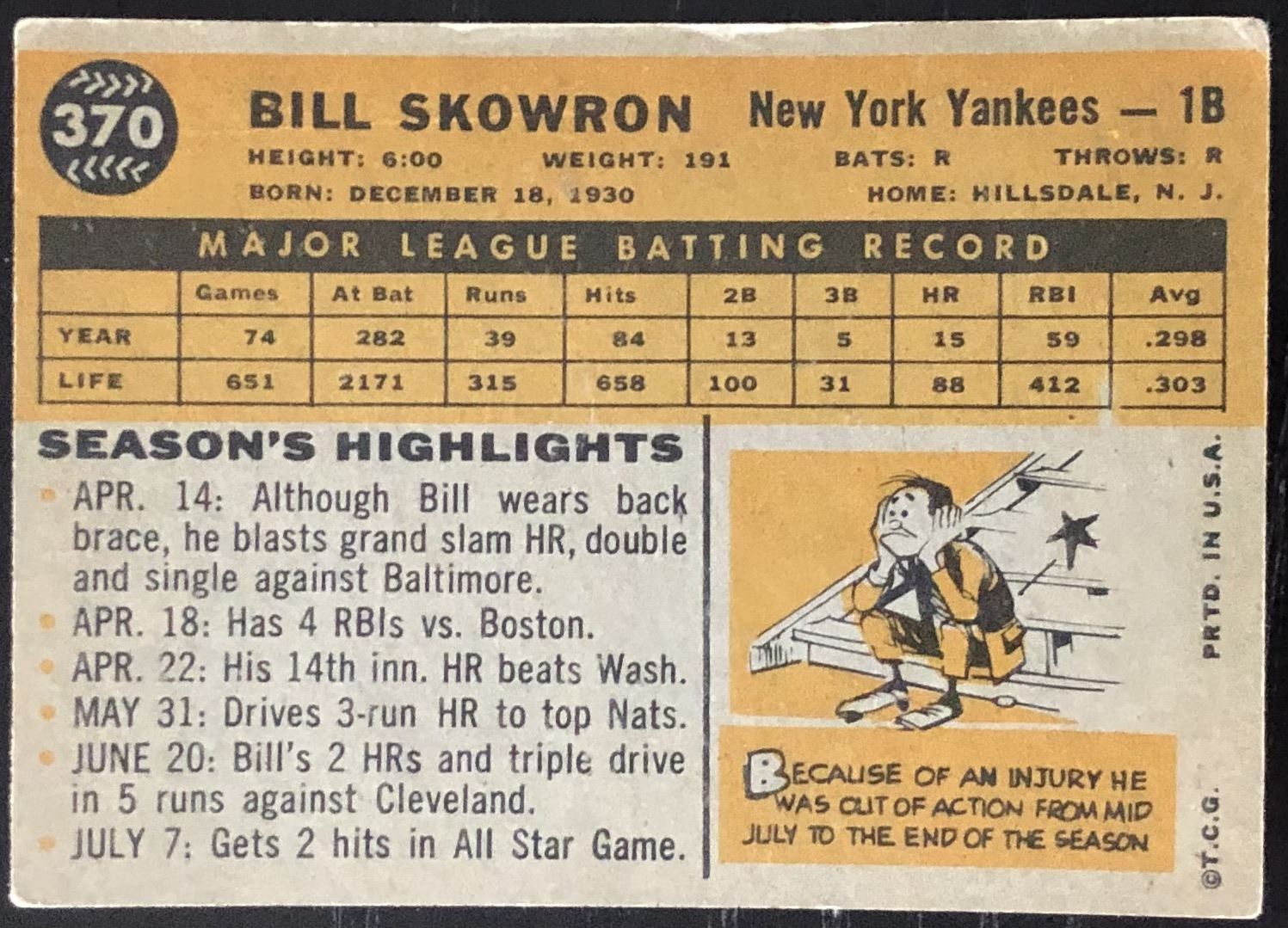Lot 1141 1960 TOPPS GRAY BACK MOOSE SKOWRON