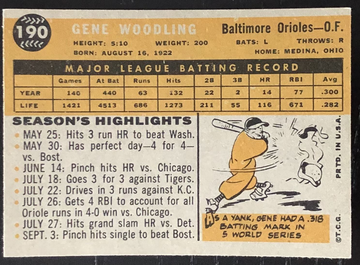 Lot 1143 1960 TOPPS GRAY BACK GENE WOODLING
