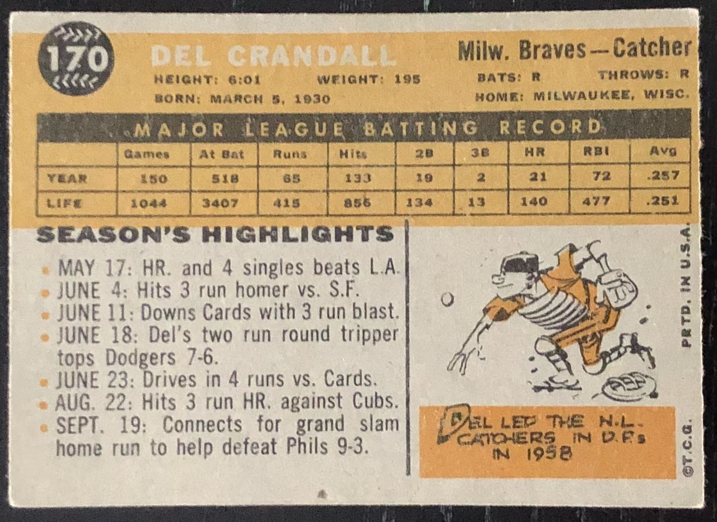 Lot 1146 1960 TOPPS GRAY BACK DEL CRANDELL