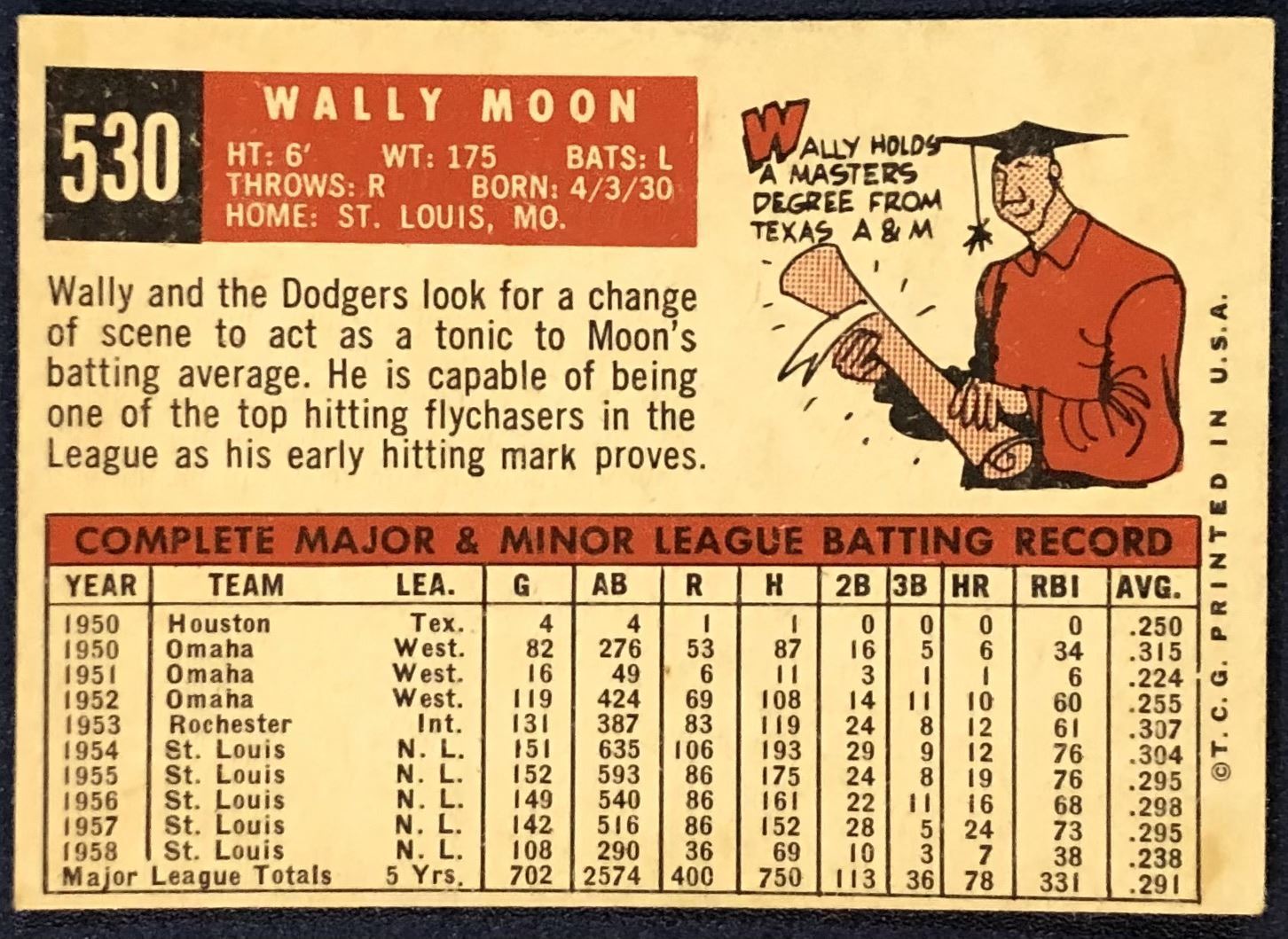 Lot 1168 1959 TOPPS WHITE BACKS WALLY MOON HIGH NUMBER