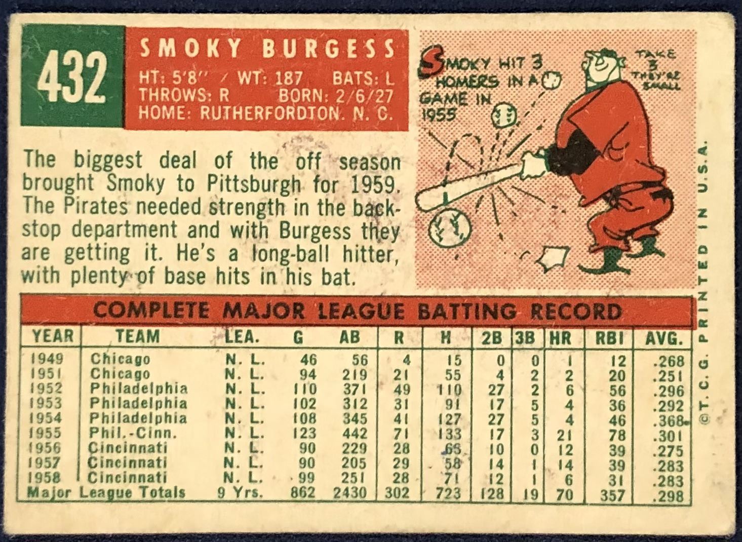 Lot 1171 1959 TOPPS WHITE BACKS SMOKY BURGESS