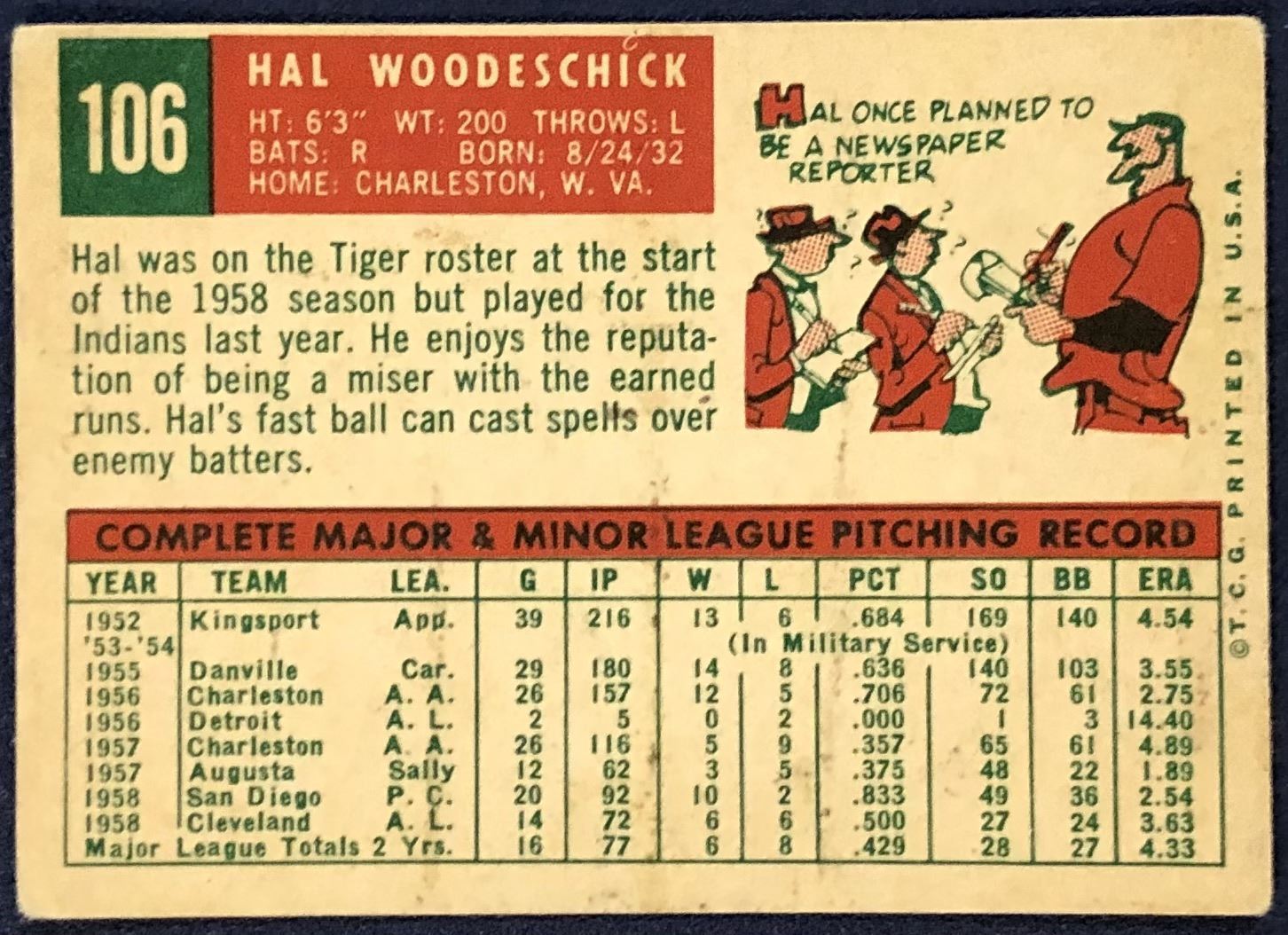 Lot 1181 1959 TOPPS WHITE BACKS HAL WOODESCHICK ROOKIE CARD
