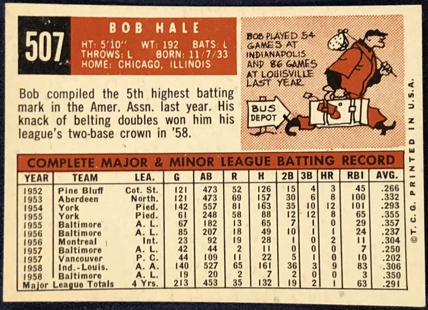 Lot 1190 1959 TOPPS WHITE BACKS BOB HALE HIGH NUMBER