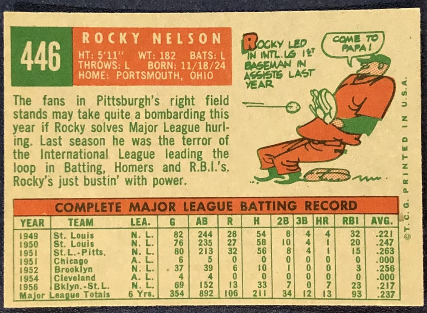 Lot 1208 1959 TOPPS GRAY BACKS ROCKY NELSON
