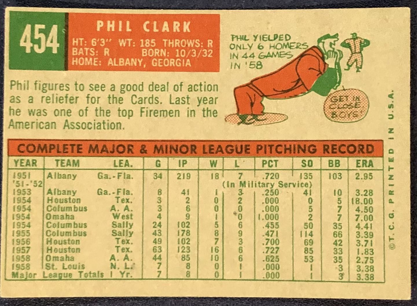 Lot 1211 1959 TOPPS GRAY BACKS PHIL CLARK ROOKIE CARD