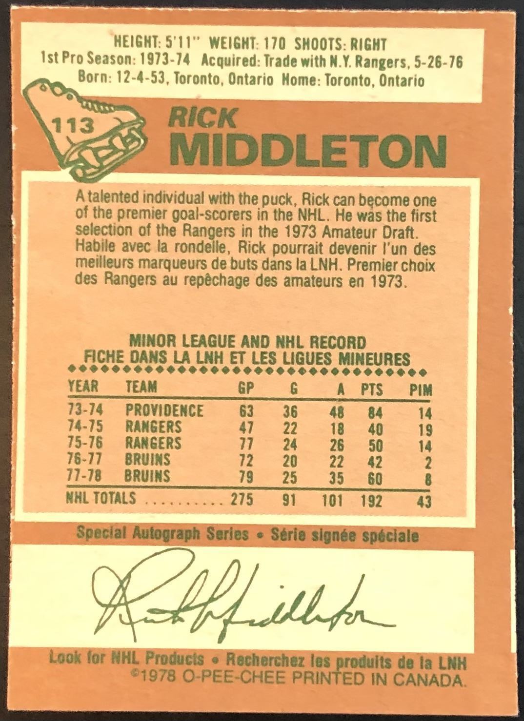 Lot 1250 1978-79 O-PEE-CHEE RICK MIDDLETON (HOF)
