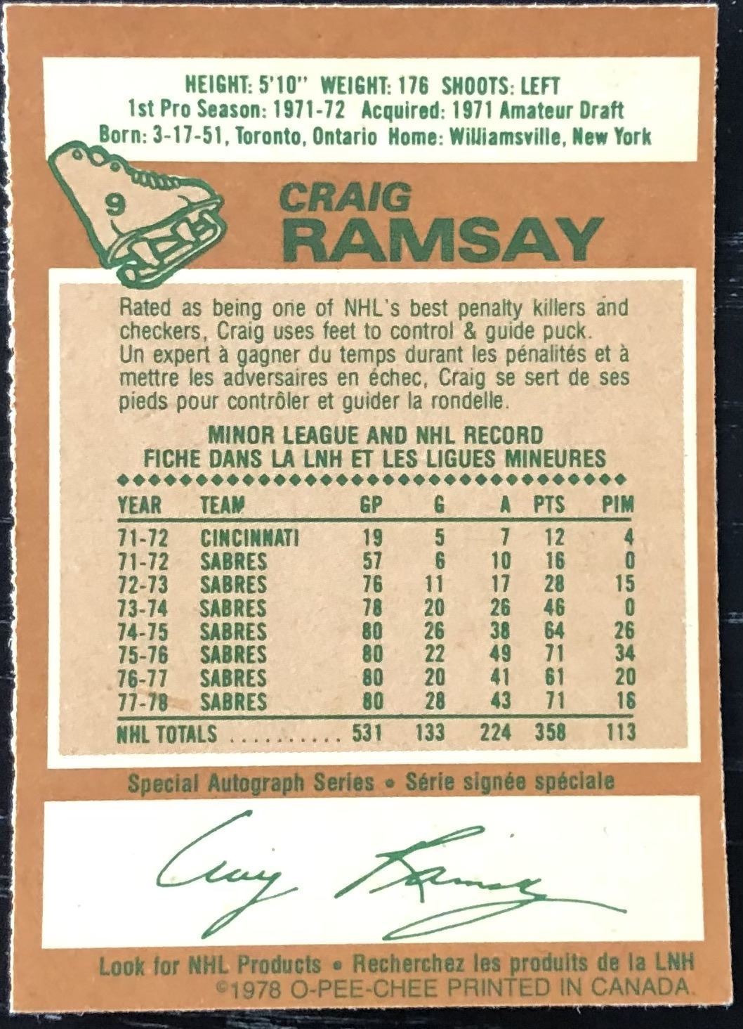 Lot 1261 1978-79 O-PEE-CHEE CRAIG RAMSAY