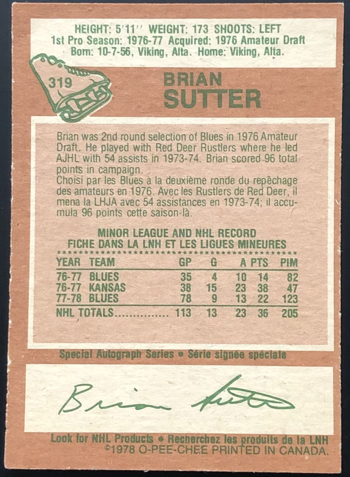 Card #319 OPC, NHL, hockey, vintage, hall of fame, rookie