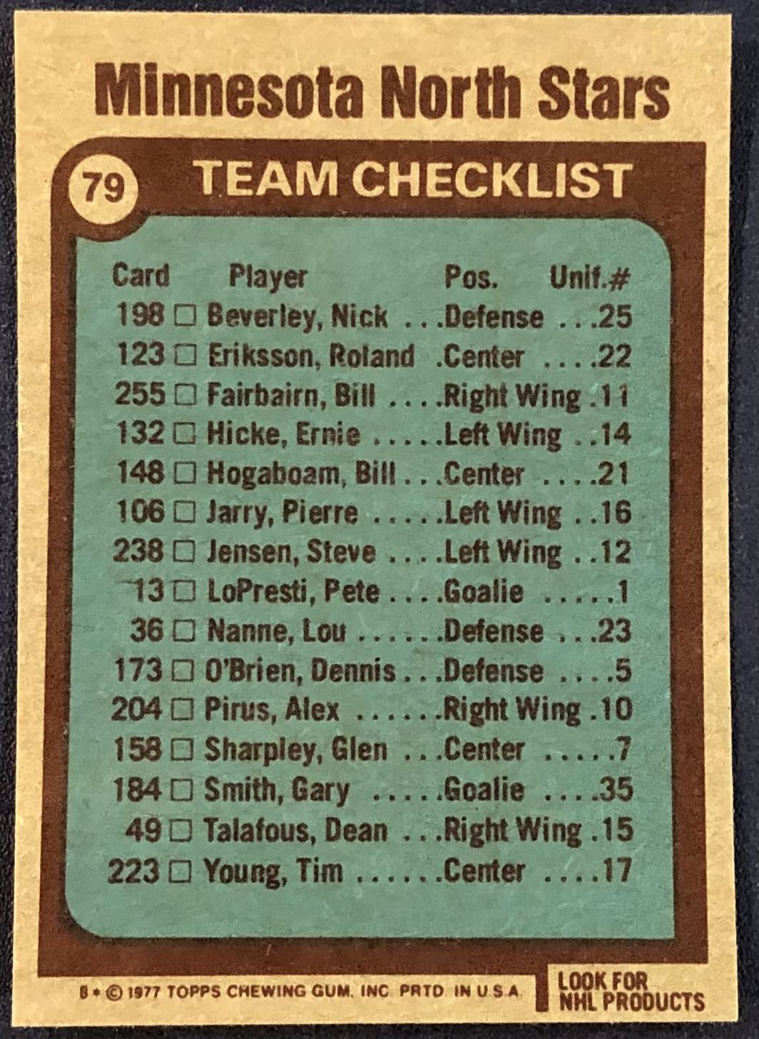 Lot 1278 1977-78 TOPPS NHL MINNESOTA NORTH STARS