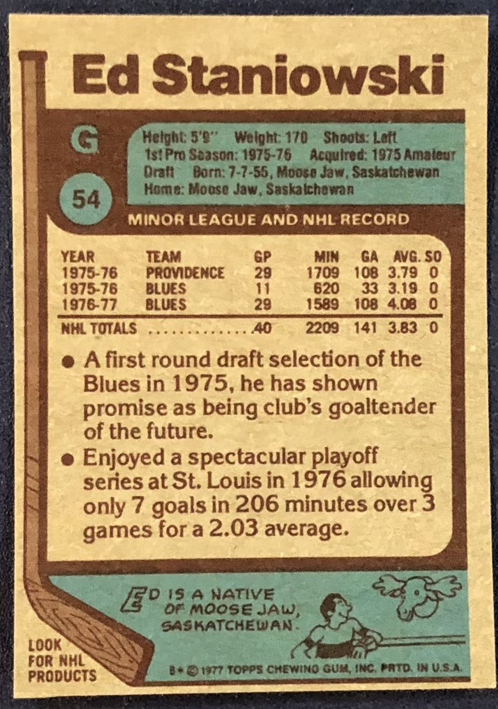 Lot 1283 1977-78 TOPPS NHL ED STANIOWSKI