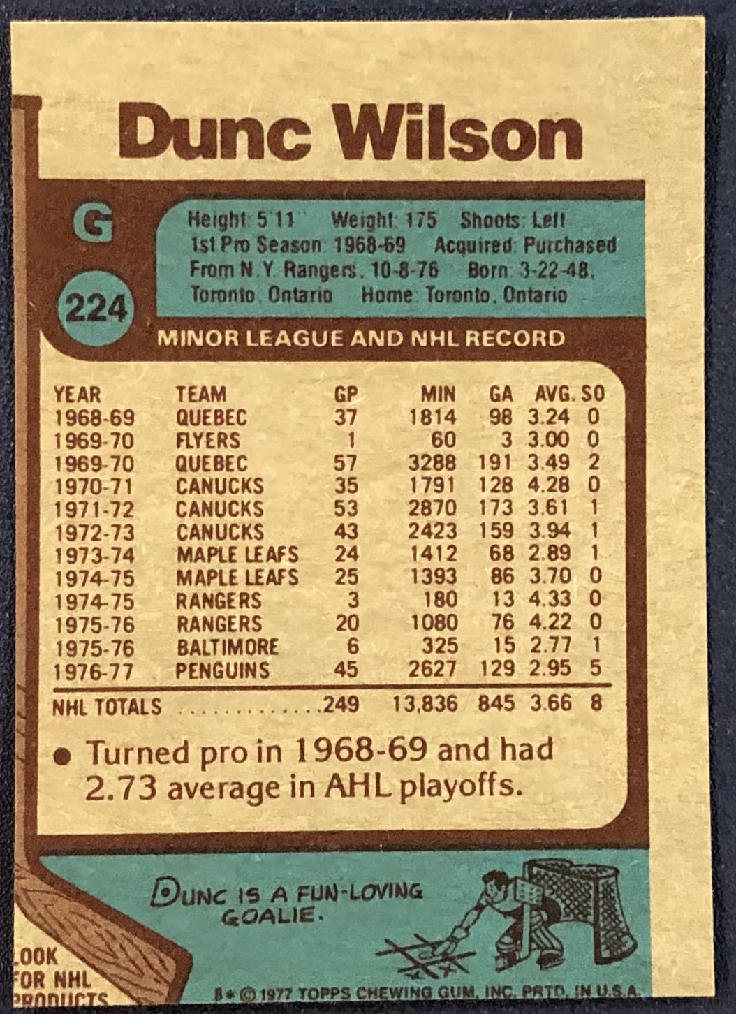 Lot 1284 1977-78 TOPPS NHL DUNC WILSON