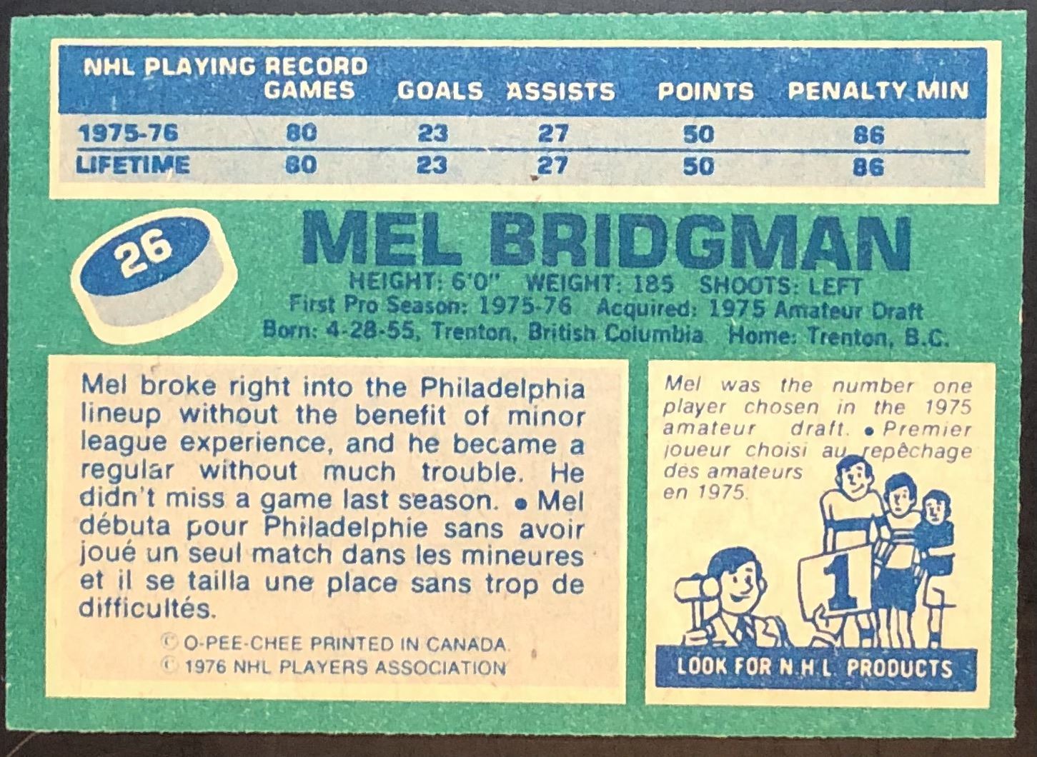 Lot 1304 1976-77 O-PEE-CHEE MEL BRIDGMAN ROOKIE CARD