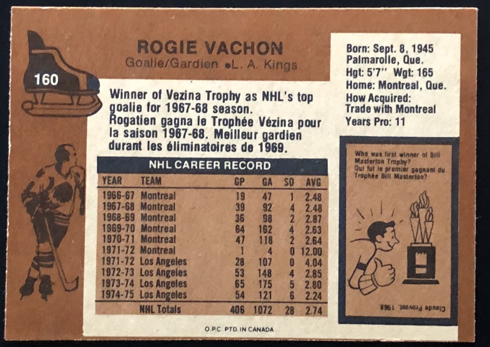 Lot 1320 1975-76 O-PEE-CHEE ROGIE VACHON (HOF)