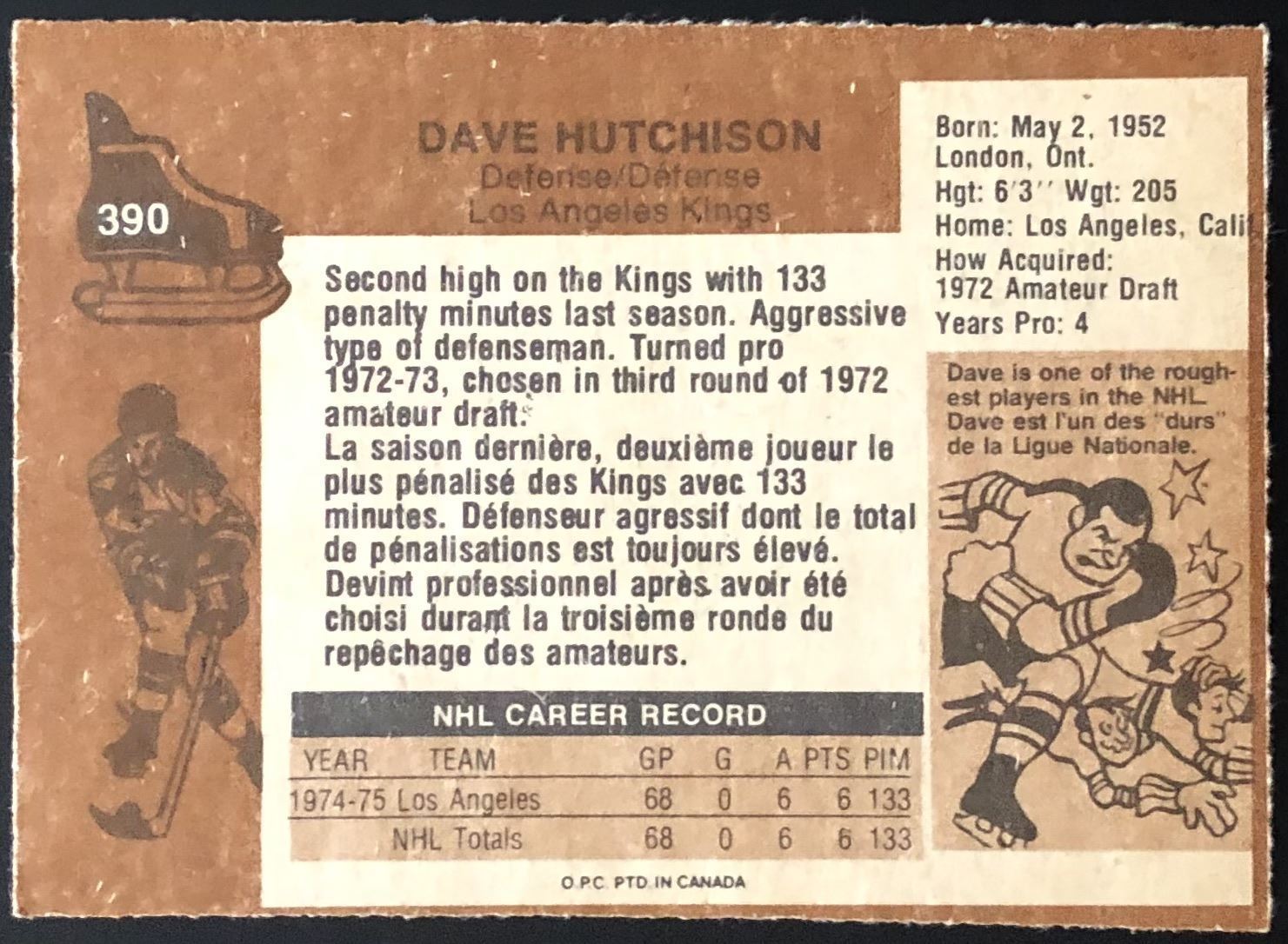 Lot 1324 1975-76 O-PEE-CHEE DAVE HUTCHISON ROOKIE CARD