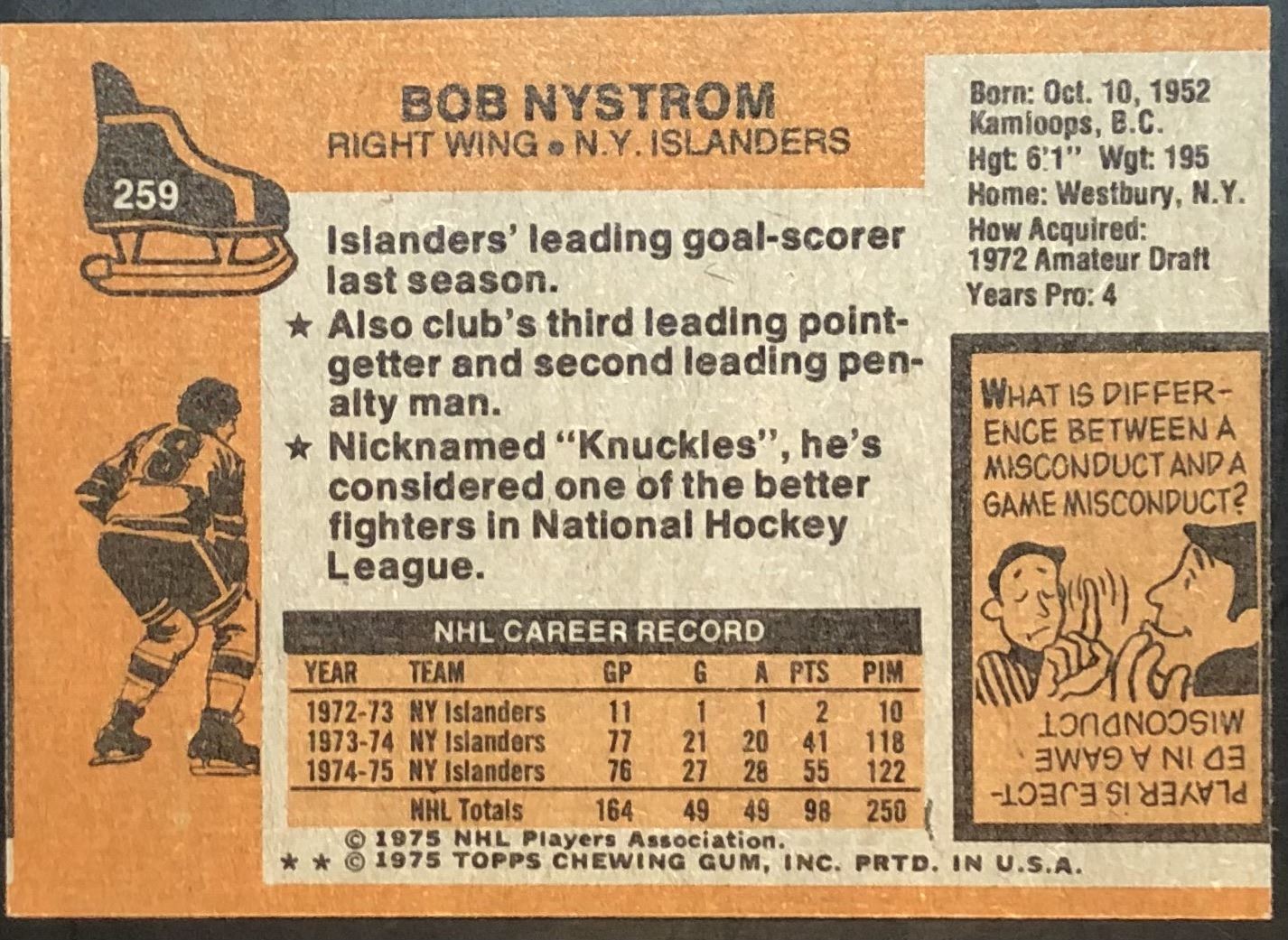 Lot 1333 1975-76 NHL TOPPS BOB NYSTROM