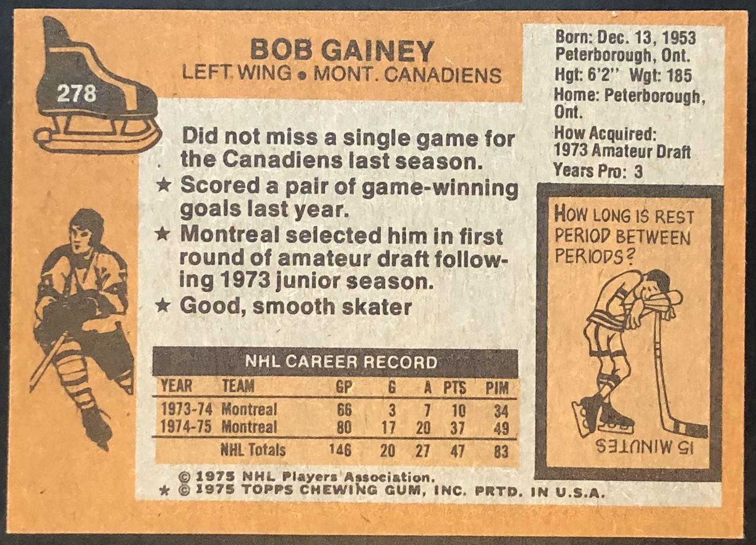 Card #278 NHL, hockey, vintage, hall of fame
