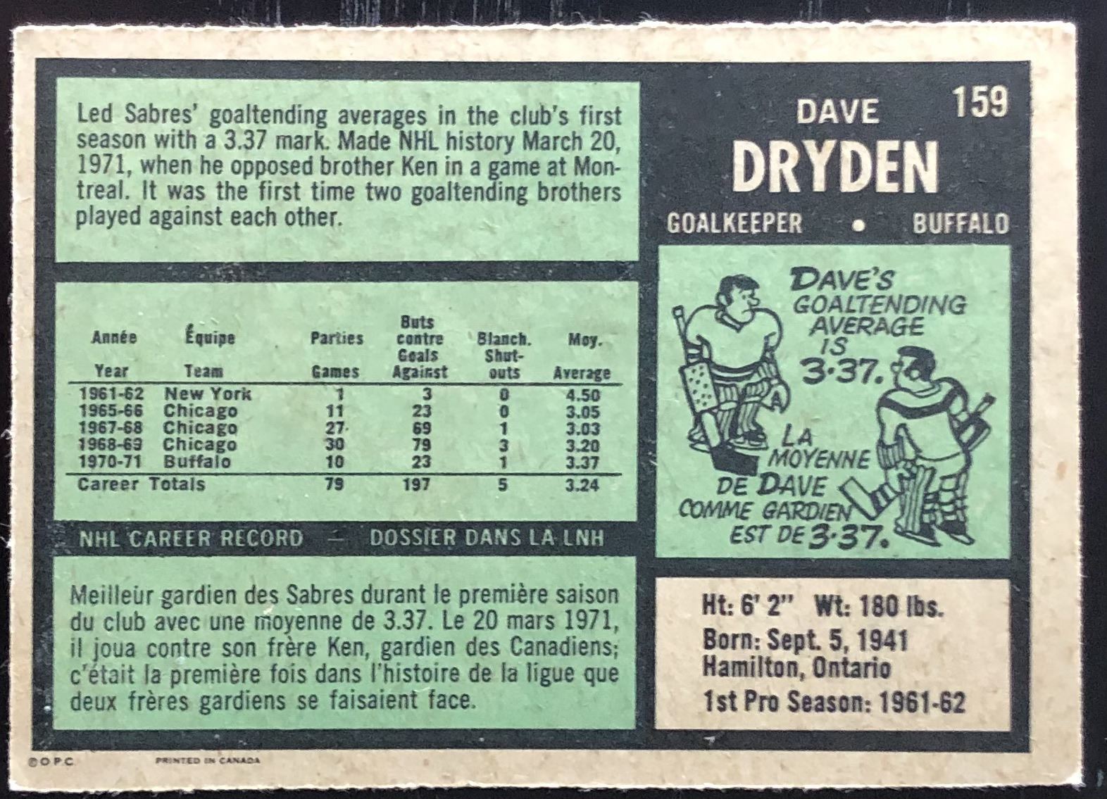 Lot 1361 1971-72 O-PEE-CHEE DAVE DRYDEN