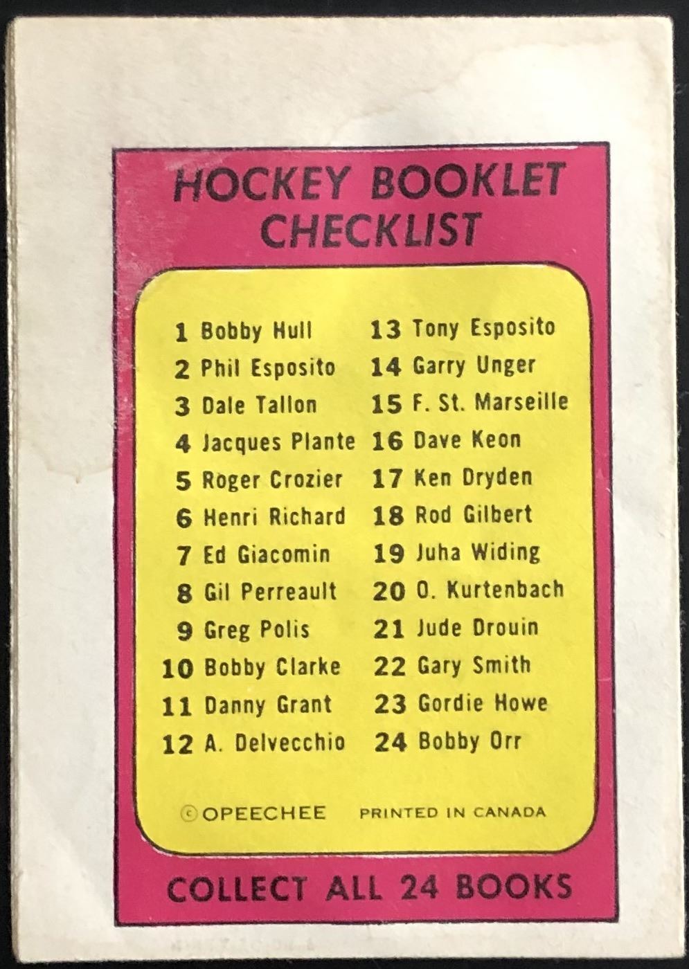 Booklet #10 (minor staining) NHL, hockey, OPC, vintage, hall of fame