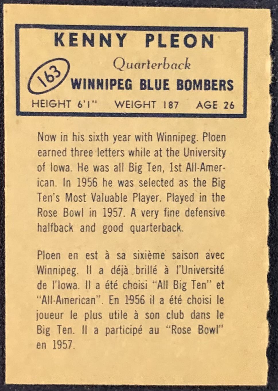 Lot 1436 1962 TOPPS CFL KENNY PLOEN (HOF)