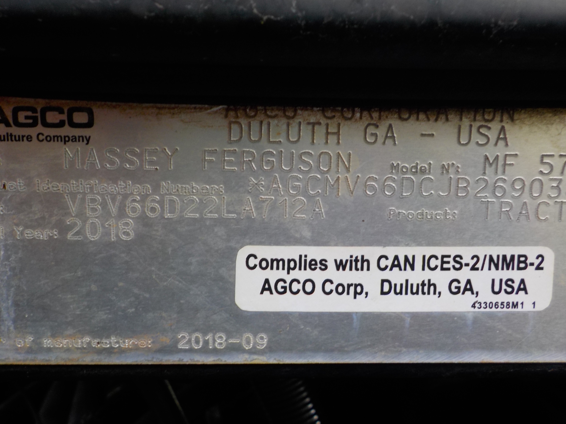 Lot 52 2018 MASSEY FERGUSON 5713 Farm Tractor