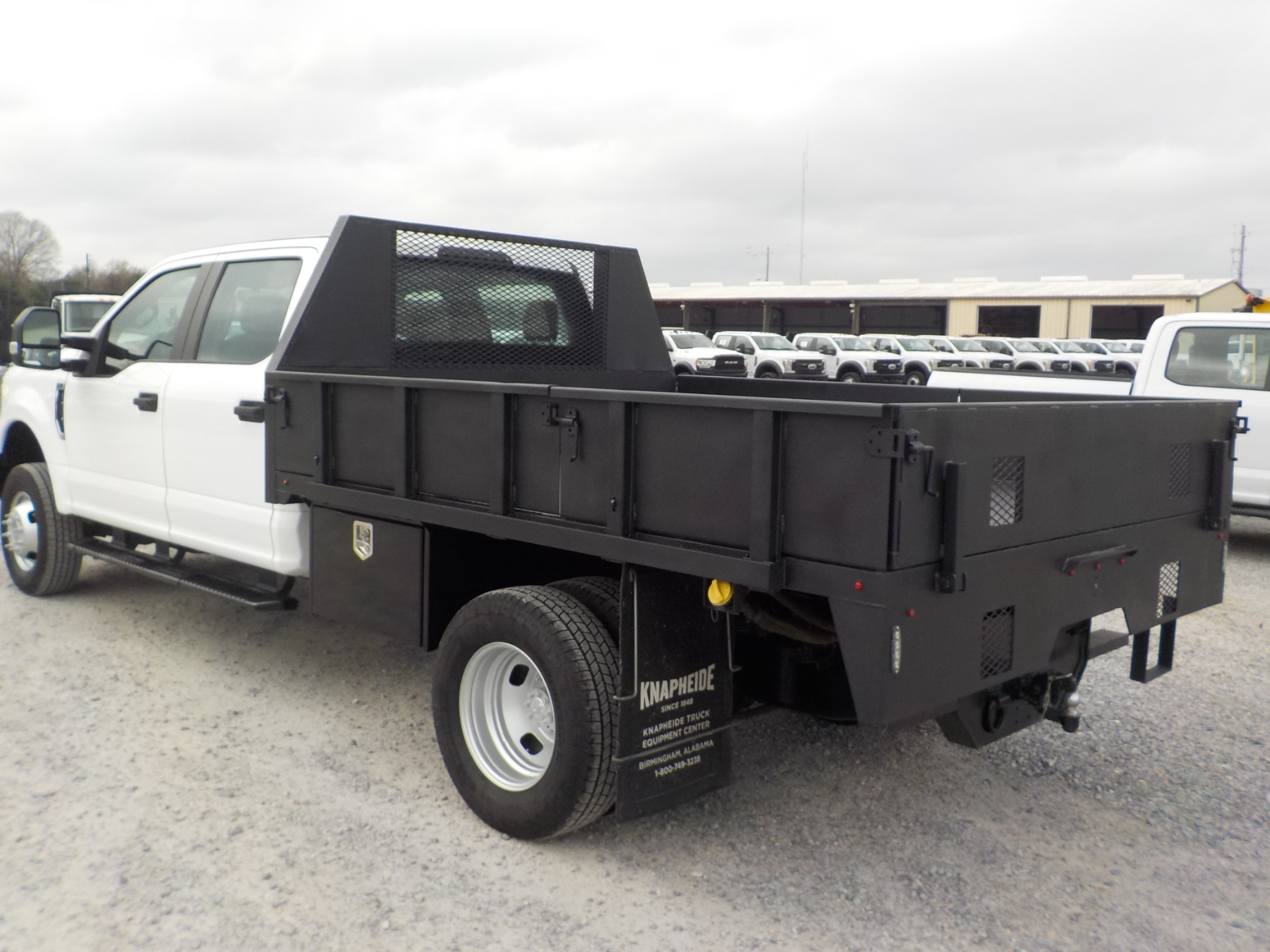 4x4, dually, crew cab, V8 gas, A/T, 9' Knapheide flatbed