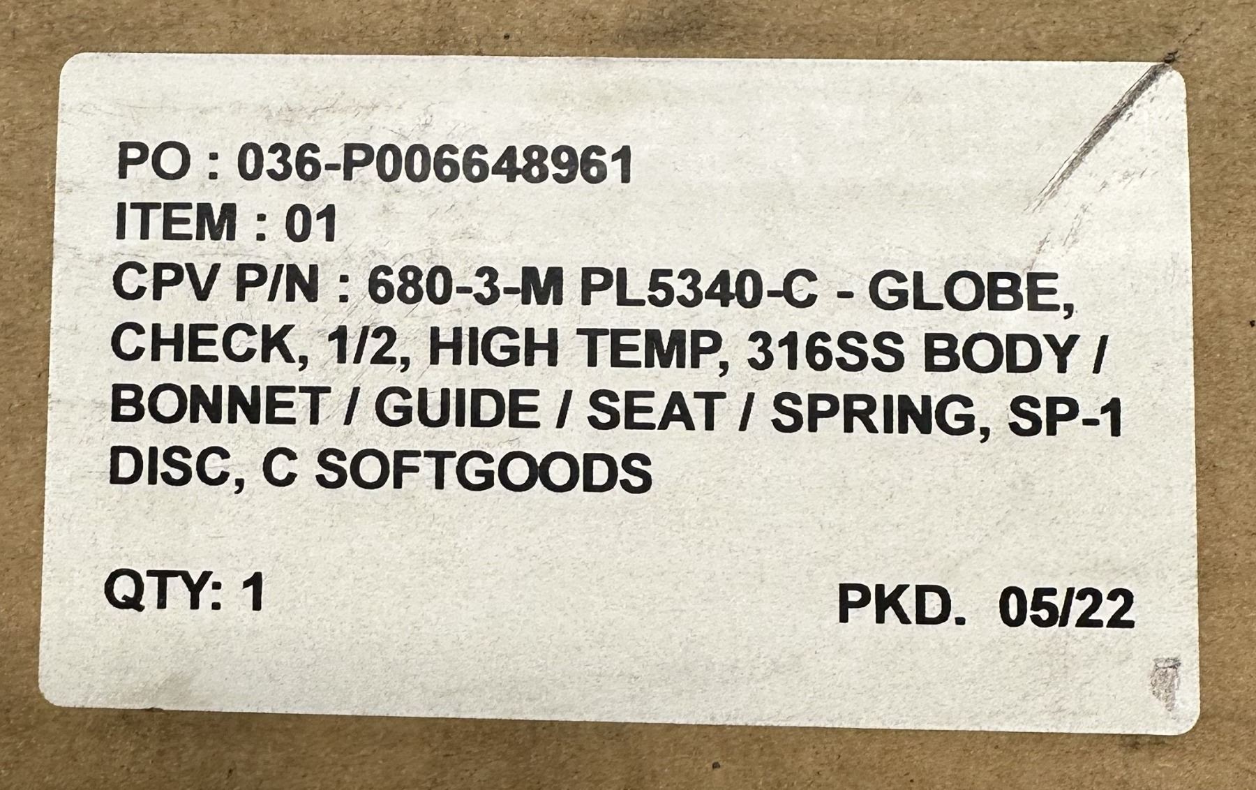 Lot 728 CVS #PL5340-C Check Valve