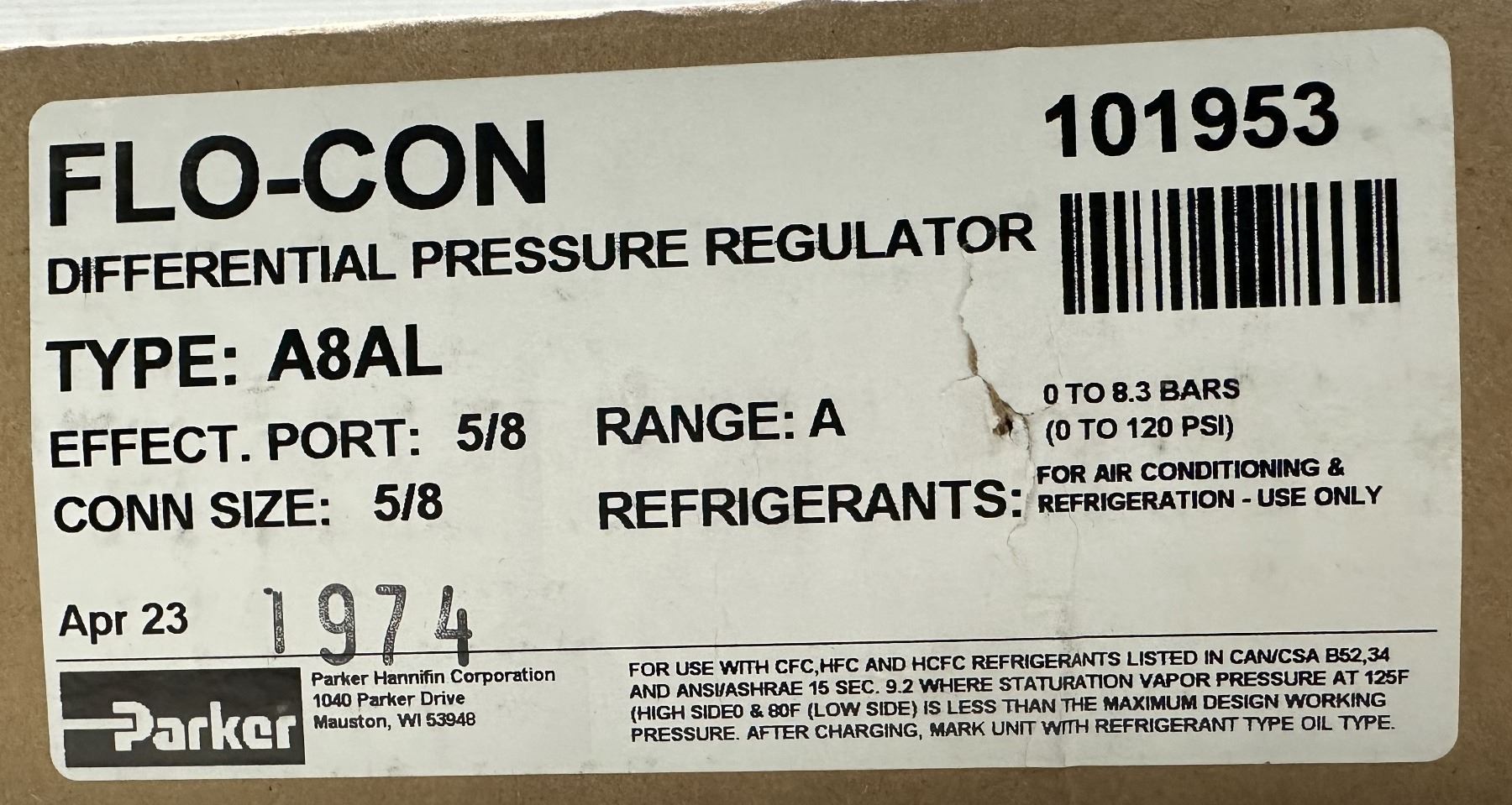 Lot 744 Parker #101953 Type A8AL Flo-Con Regulator Valve