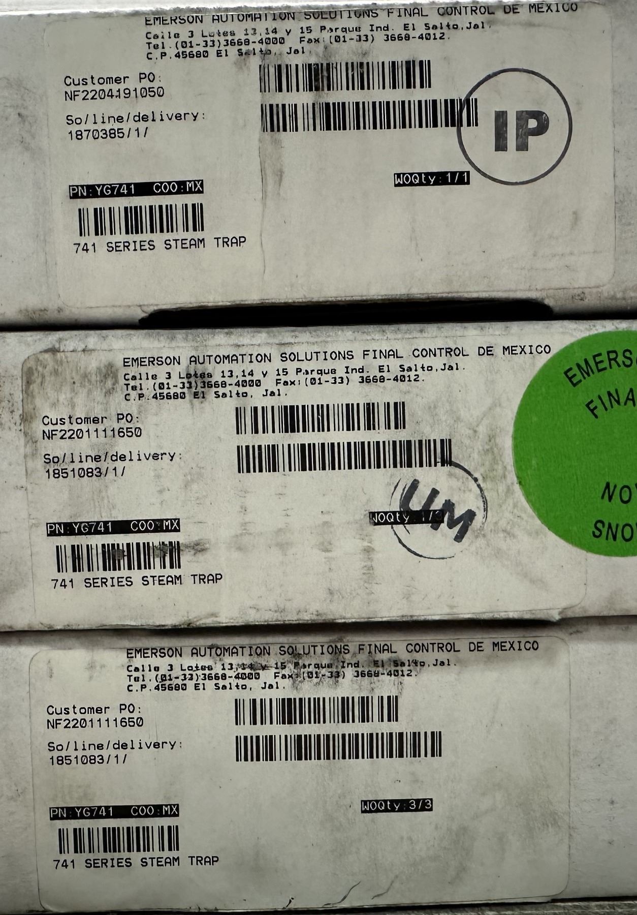 Lot 752 (3) Emerson #YG741 Steam Traps