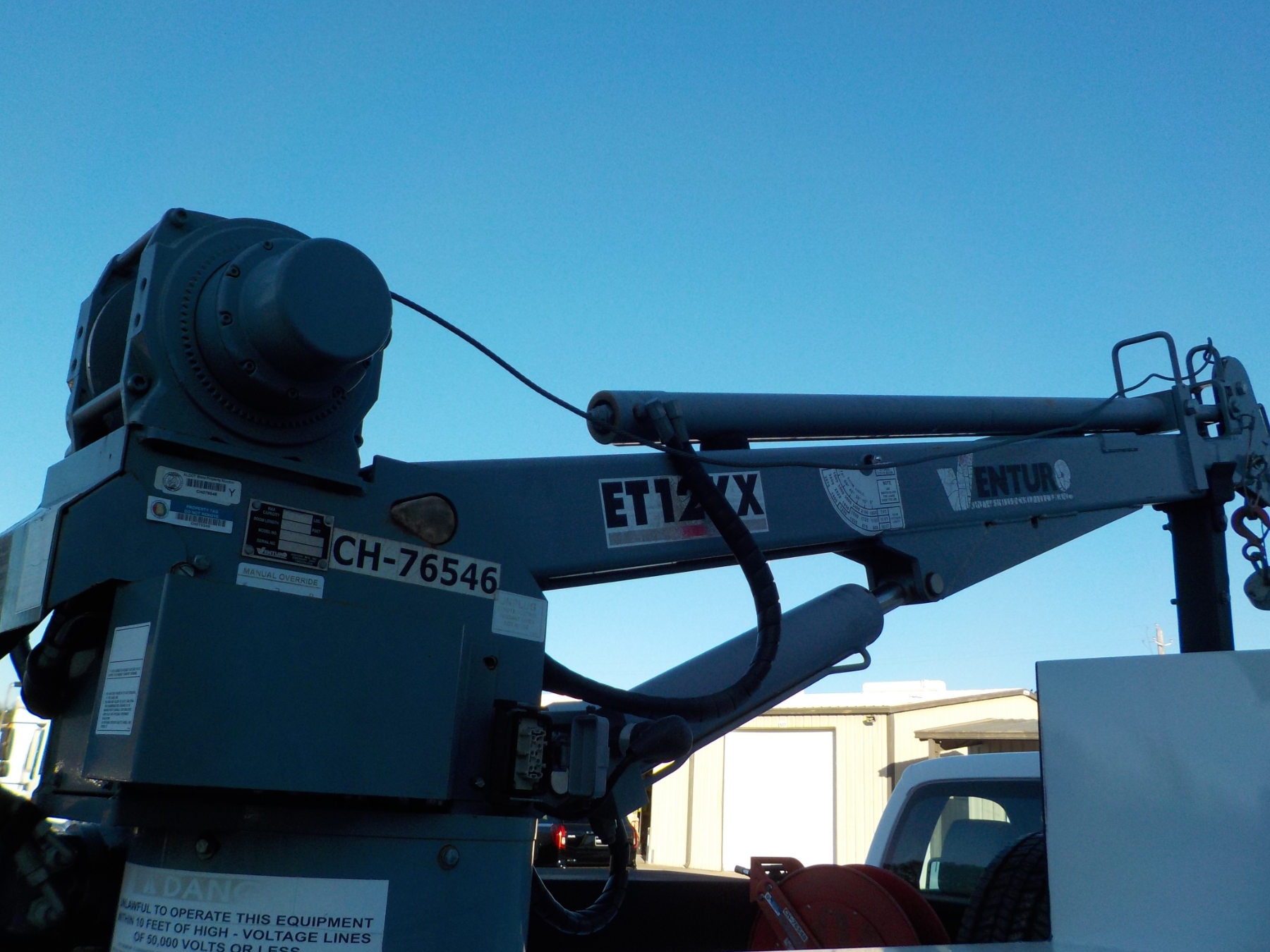 dually, V10 gas, A/T, Knapheide body, Venturo ET12KX crane, hose reel, brush guard, Warn winch