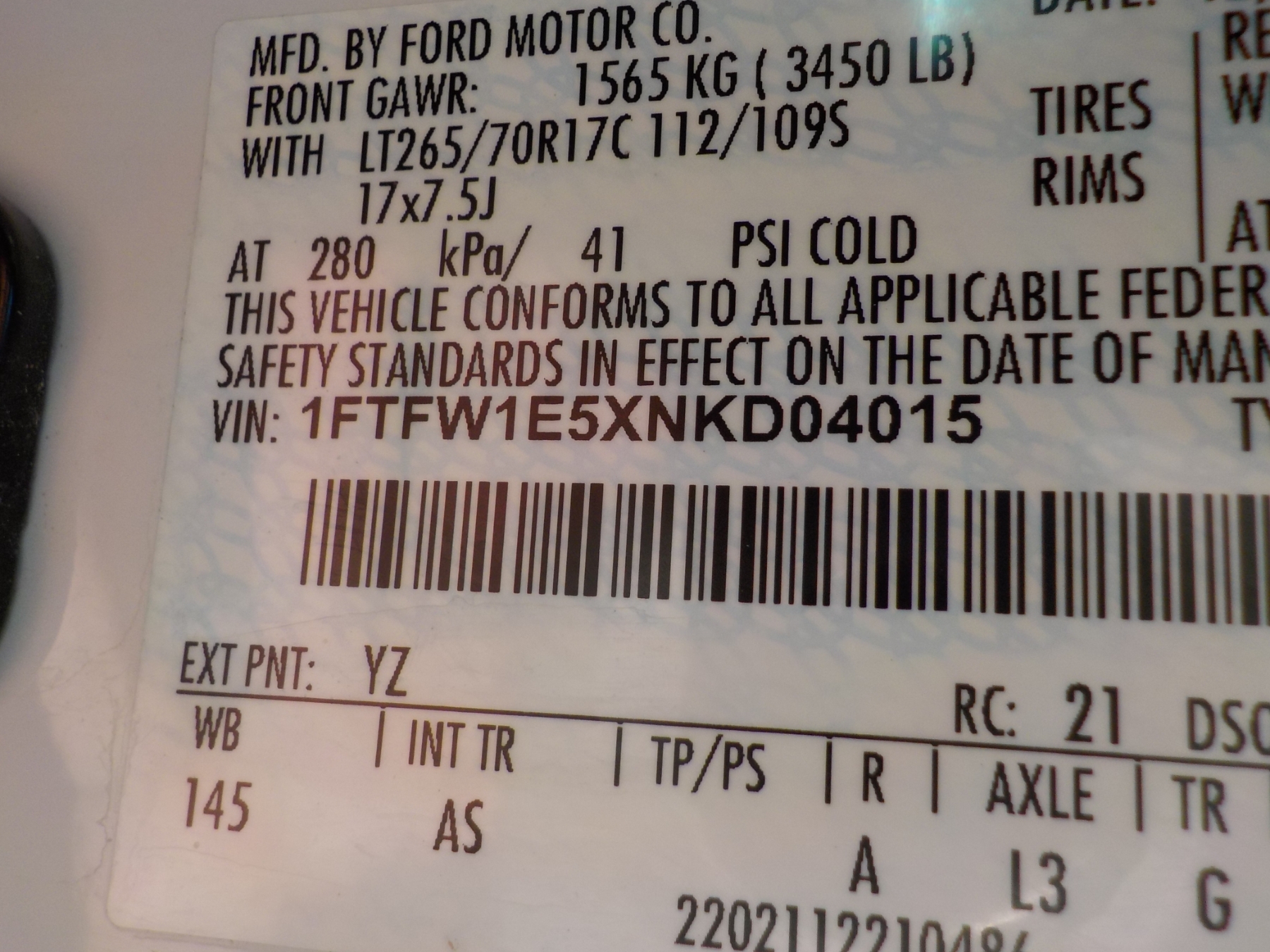 Vehicle ID Number: 1FTFW1E5XNKD04015