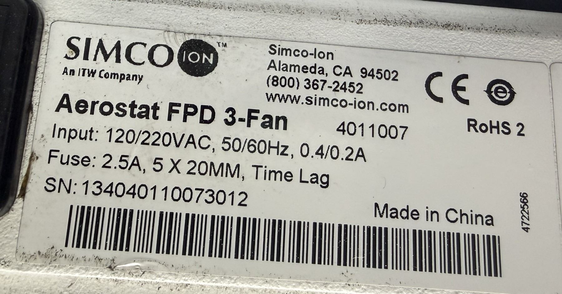 SIMCO #AEROSTAT FPD 3-FAN