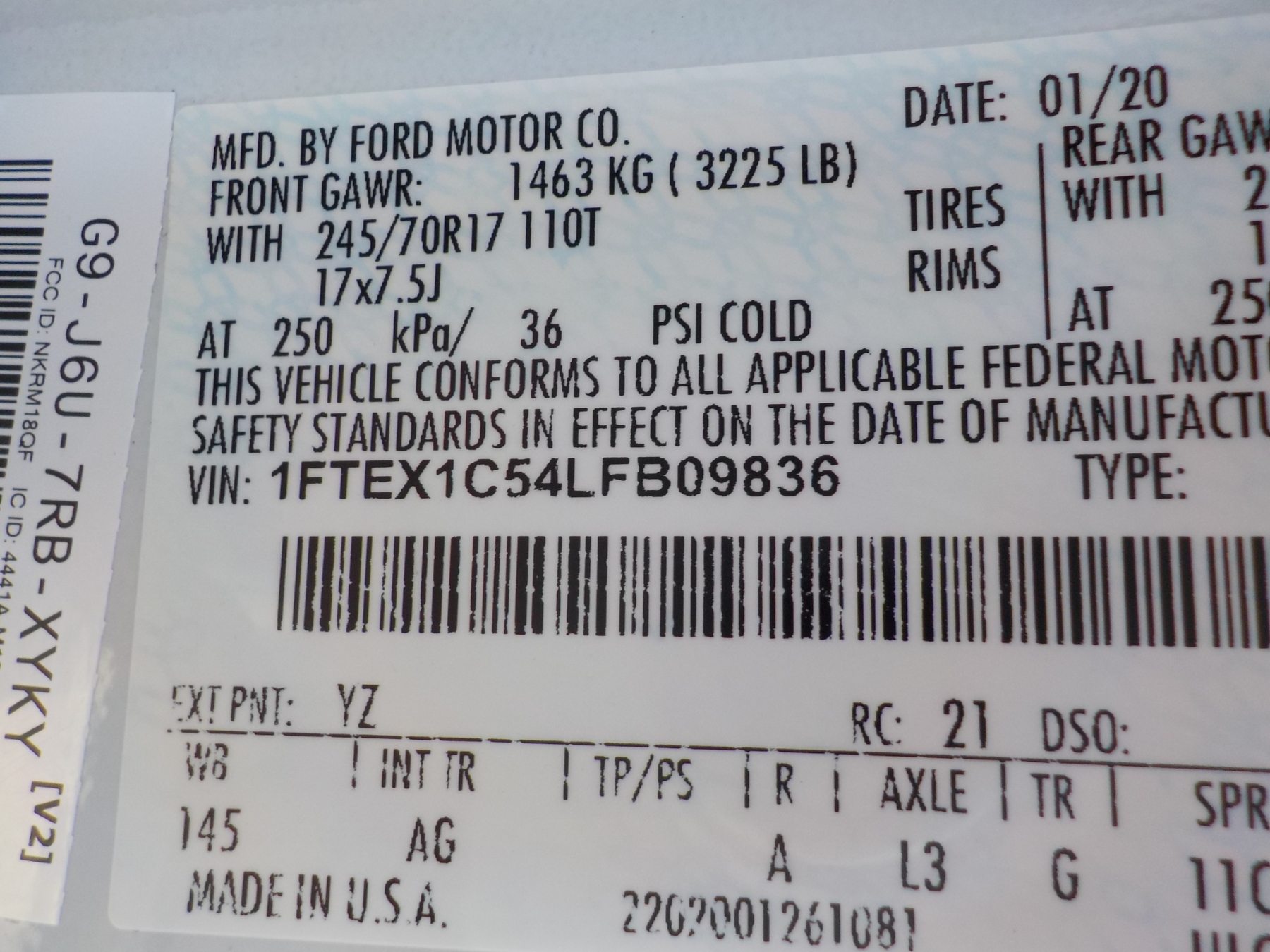 Vehicle ID Number: 1FTEX1C54LFB09836