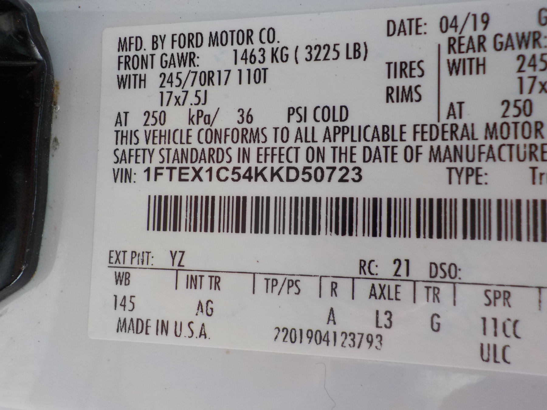 Vehicle ID Number: 1FTEX1C54KKD50723
