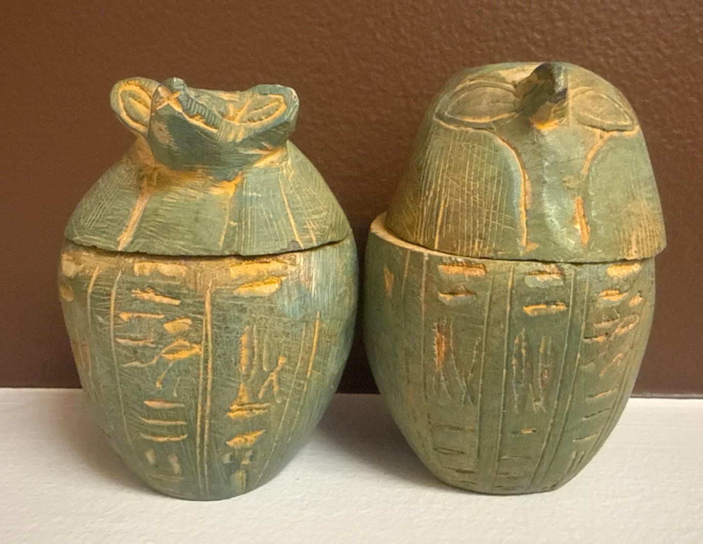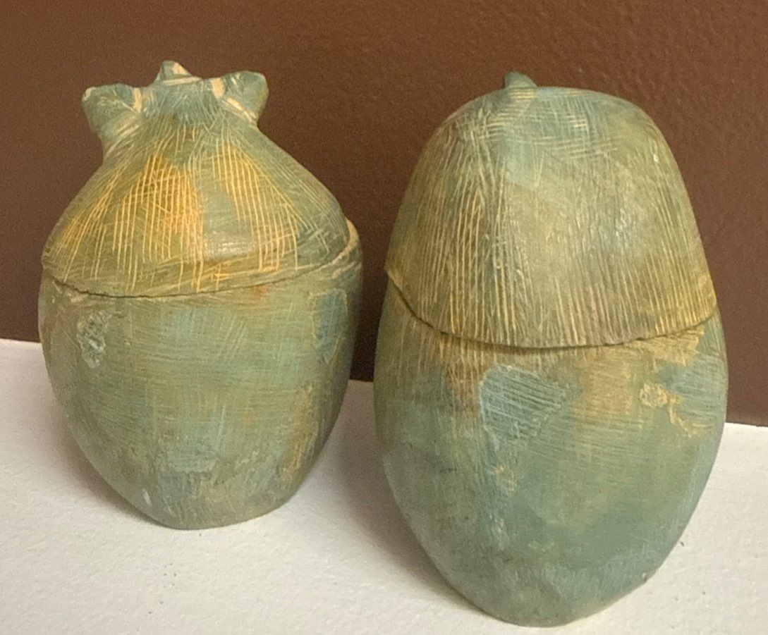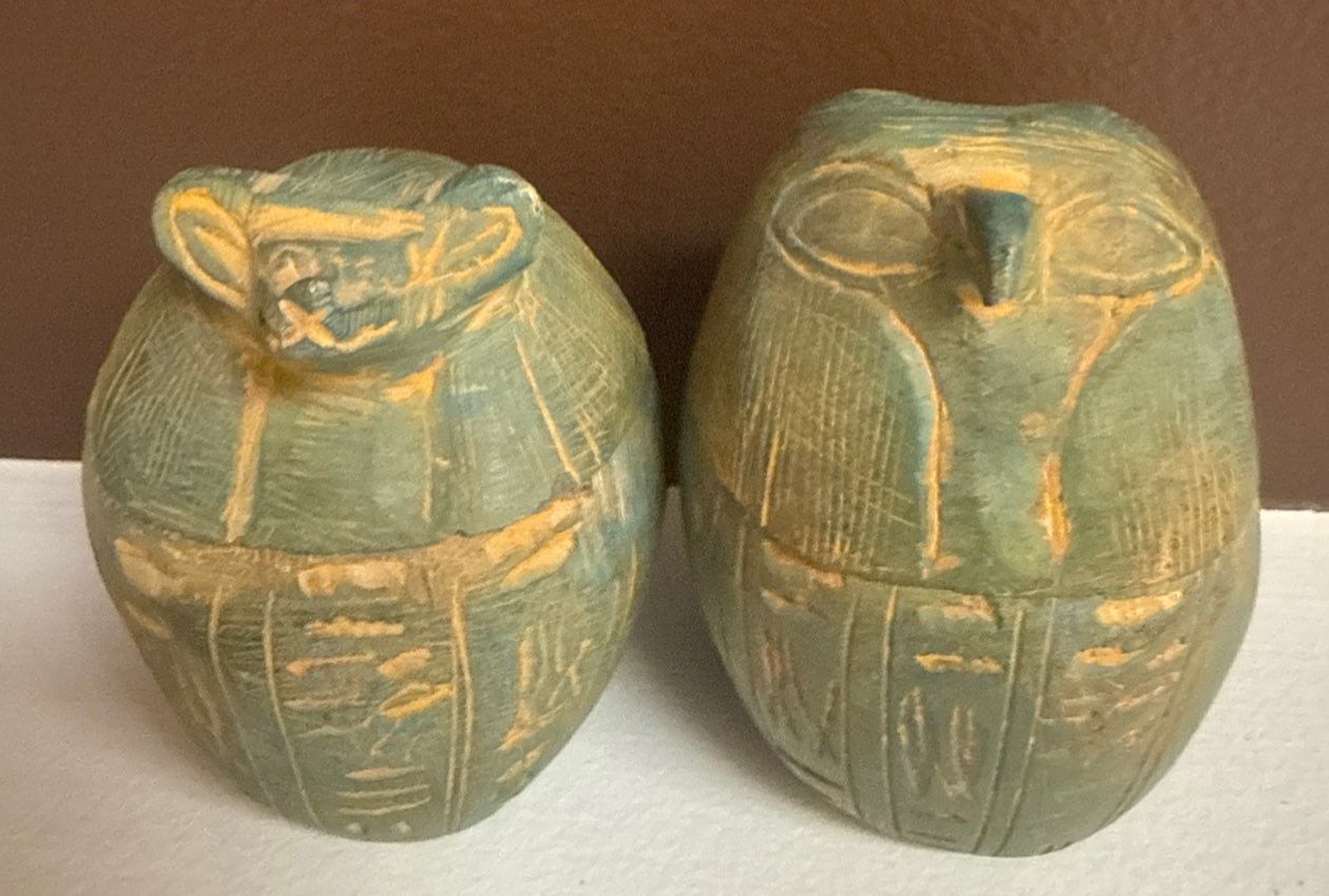 Lot 3 Ancient Egyptian Glazed Stone Canopic Jars w/ Lids 4"Tall